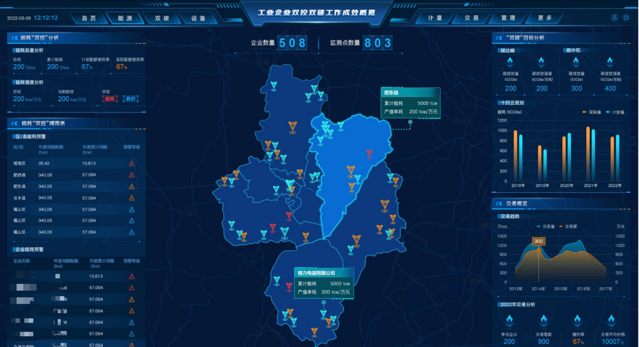 區(qū)域能碳雙控平臺融合了數(shù)字化智能化手段,在碳資產(chǎn)管理的基礎(chǔ)上,精準(zhǔn)量化考核指標(biāo),實行配額管理,制定減碳策略,尋求多評價維度的減碳方案。管理企業(yè)計量器具信息,采集監(jiān)控計量數(shù)據(jù),多維度分析區(qū)域計量審查和計量器具配備情況,為企業(yè)提供精確的數(shù)據(jù)支持。此外,它還具備能源消耗監(jiān)控、碳資產(chǎn)監(jiān)控功能,實現(xiàn)對不同行業(yè)企業(yè)碳排放的精細化管理。在節(jié)能量交易方面,實現(xiàn)從下發(fā)配額到核定履約的系列流程線上管理。智能管控設(shè)備信息,提供定期效能評價,確保設(shè)備運行效率得到有效提升。面向企業(yè)、政府提供能源、“雙碳”領(lǐng)域的特色型工業(yè)互聯(lián)網(wǎng)平臺服務(wù)。