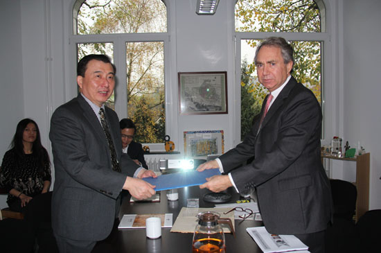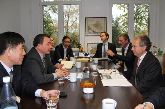 11月17日-18日,集團董事長劉志江在中材裝備集團董事長宋壽順、中材國際天津公司董事長彭建新、中材國際副總裁童來茍、集團辦公室主任傅金光的陪同下,在杜塞爾多夫分別會見了Hazemag集團公司總經理威爾默和SK集團董事長戈林子博士,雙方就推進合作、促進共同發展等事宜進行了會談。