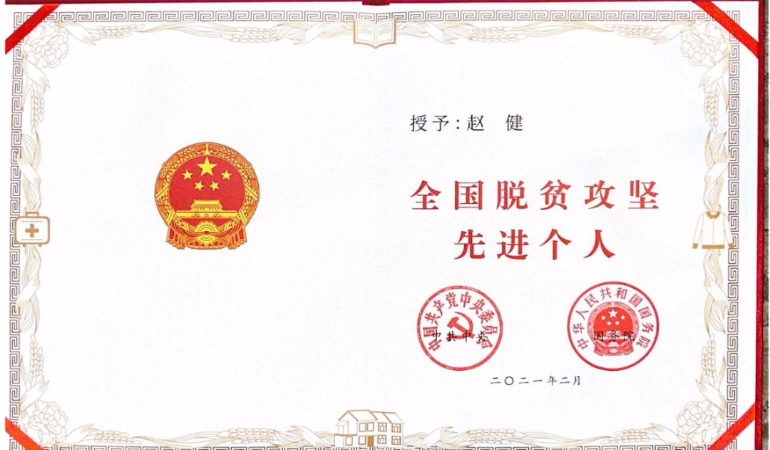 2019年楊嶺村全村農民人均可支配收入達10363元,提前一年完成脫貧摘帽目標,榮獲全國鄉村振興示范村。趙健用真心、真情、實干的工作,詮釋“責任使命在肩頭,脫貧致富在路上”的承諾,踐行“不獲全勝、決不收兵”的鏗鏘誓言,為全面建成小康社會貢獻榜樣力量。