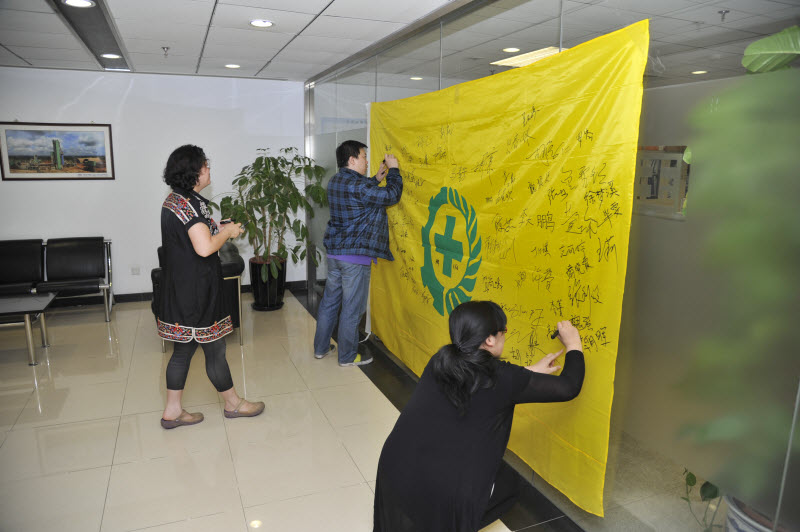 啟動儀式上,公司領導在安全旗上簽名,標志著中材國際2013年“安全生產月”正式啟動。隨后,公司總部、鑫佳泓物業公司等近百名員工進行了安全承諾并在安全旗上簽名。啟動儀式由安全生產管理部部長孫成林主持。