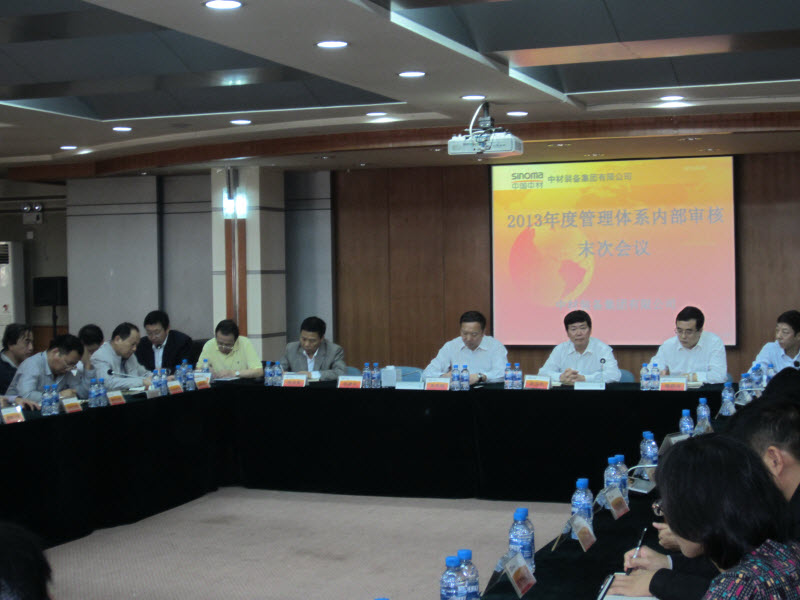 9月29日上午,中材裝備集團2013年度內審末次會議在天津召開。裝備集團董事長宋壽順、總經理吳選民以及其他領導出席了會議,各職能部門、各子(分)公司主要負責人、各內審小組組長、部分審核員等共計40余人參加了會議。