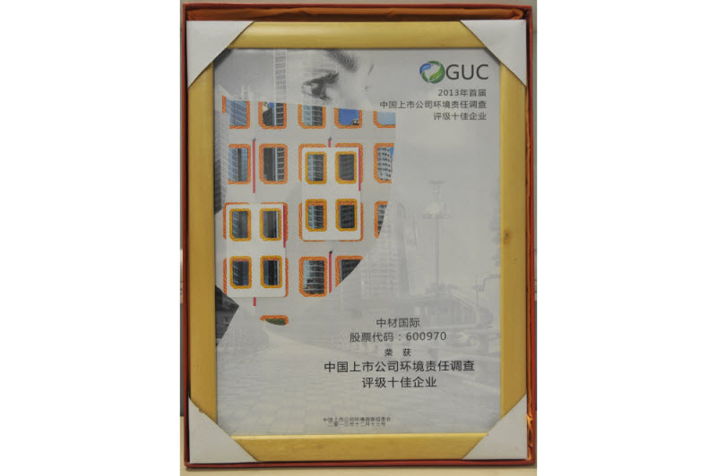 2013年12月13日,“上市公司環境責任評級結果新聞發布會”在京召開,中材國際獲“十佳環境責任企業”榮譽。