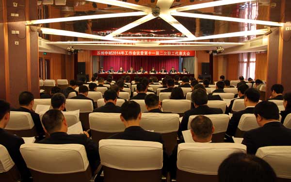 蘇州中材2014年年度工作會議暨第十一屆二次職代會于元月27至28日在昆山中材大廈召開,蘇州中材領導班子成員、項目經理、總部中層管理人員和職工代表參加了會議。