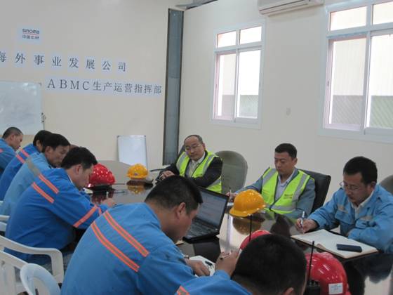 在聽取相關介紹后,賀參贊對ABMC項目現場部在項目停工三年之后攻克各種難關,通過性能考核,注重細節管理,嚴把安全關和質量關,穩步推進項目各項工作予以高度贊揚和肯定。對SINOMA在中東地區的品牌形象給予高度認可。同時希望SINOMA這樣優秀的央企帶出更多優秀的團隊,同時優秀的團隊也能進一步提升SINOMA的國際形象。在知悉面臨市場和設備等相關困難時,賀參贊表示,使館經參處會盡全力支持中材國際海外事業發展公司及ABMC項目。他強調現場部在注重生產安全的同時,一定要注重生活安全、交通安全以及食品安全。