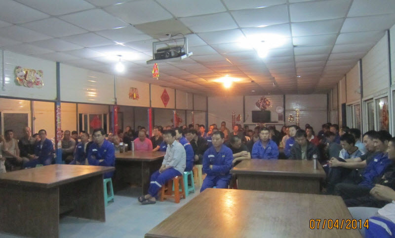 項目經理助理李衛東代表項目部作了2014年一季度工作總結和二季度工作安排,對生產中存在的問題和差距進行了細致認真的分析,并提出了相應的解決措施。他還帶著大家重溫了2014年《生產過程管理考核辦法》。