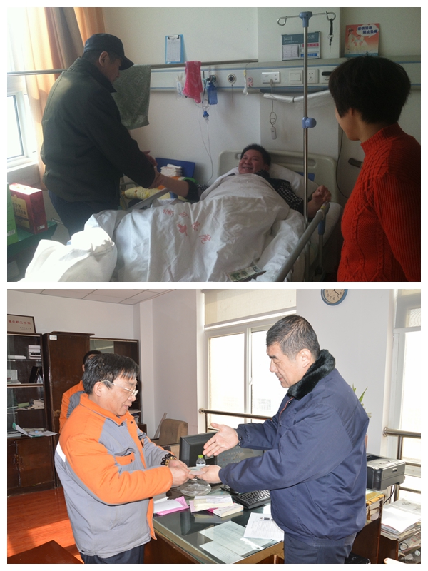 2月11日,徐州中材重機公司行政、工會組成慰問組來到醫院和困難職工家中,向職工及家屬拜年,帶去了公司黨政領導的問候和慰問品,并與他們親切交談,詳細了解了患病職工的病情、治療和康復情況,以及家庭生活和家人身體健康情況,并鼓勵他們要安心治病養病,樹立信心、早日康復。