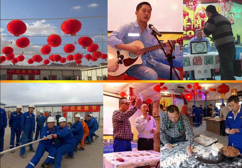 除夕晚上,經(jīng)過精心布置的項(xiàng)目部駐地彩燈閃爍,紅燈高掛,呈現(xiàn)出濃濃的節(jié)日氣氛。除夕全員守歲聚餐會(huì)按時(shí)開席,一道道精心烹制的菜肴,一句句開心的祝福,150多人共迎新年的歡騰,沖淡了鄉(xiāng)愁,增添了歡樂,大家都陶醉在大家庭的溫暖中。業(yè)主代表默罕默德將軍帶領(lǐng)管理團(tuán)隊(duì)?wèi)?yīng)邀出席,他在致辭中對(duì)大家一年的辛勤工作表示感謝,對(duì)新的一年表達(dá)祝福,并用中文向大家拜年。