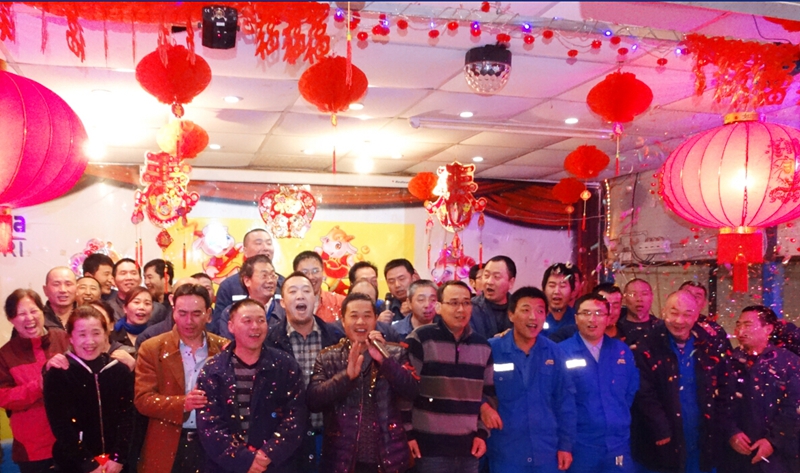 正月初一的一場(chǎng)難得春雨,為新的一年帶了一份祝福,春雨過后的夜晚更加明凈,項(xiàng)目部餐廳內(nèi)掌聲不斷,叫好連連。由員工們自己精心準(zhǔn)備的迎新春大聯(lián)歡精彩上演。幽默調(diào)侃的三句半《咱們的GOE》,既道出苦樂的堅(jiān)守,又對(duì)新一年留下期待;小品《如廁奇遇》對(duì)壟斷行業(yè)的亂收費(fèi)諷刺到位;吉他彈唱《斑馬、斑馬》委婉動(dòng)聽余音繞梁;魔幻的近景撲克牌魔術(shù)讓大家匪夷所思連連叫絕;此外還有歌曲演唱,你比劃我猜、吹氣球、電腦抽獎(jiǎng)等節(jié)目輪番登場(chǎng),整場(chǎng)約3個(gè)小時(shí)的文藝演出讓大家大呼過癮,最后全場(chǎng)同唱《難忘今宵》,用歌聲記住這個(gè)難忘的夜晚,相約來年同慶。春節(jié)期間,項(xiàng)目部還組織開展了衛(wèi)生宿舍評(píng)比、包餃子比賽、拔河對(duì)抗賽、電影展映等其他文體活動(dòng)。