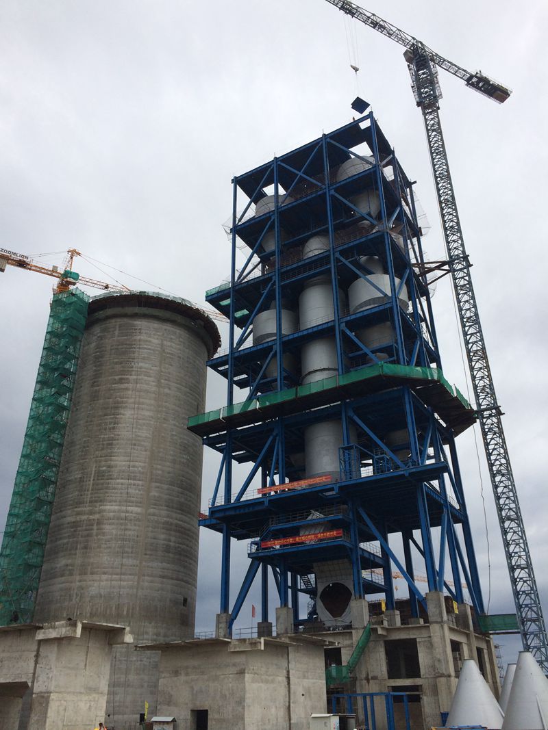 莫桑比克當地時間2015年4月6日上午8時18分,由蘇州中材建設有限公司承建的中基建設發展有限公司莫桑比克馬普托5000t/d熟料水泥生產線窯尾框架按期順利封頂。