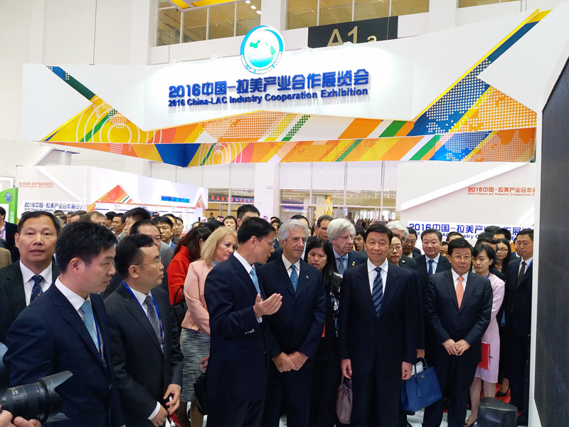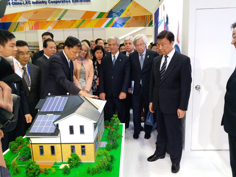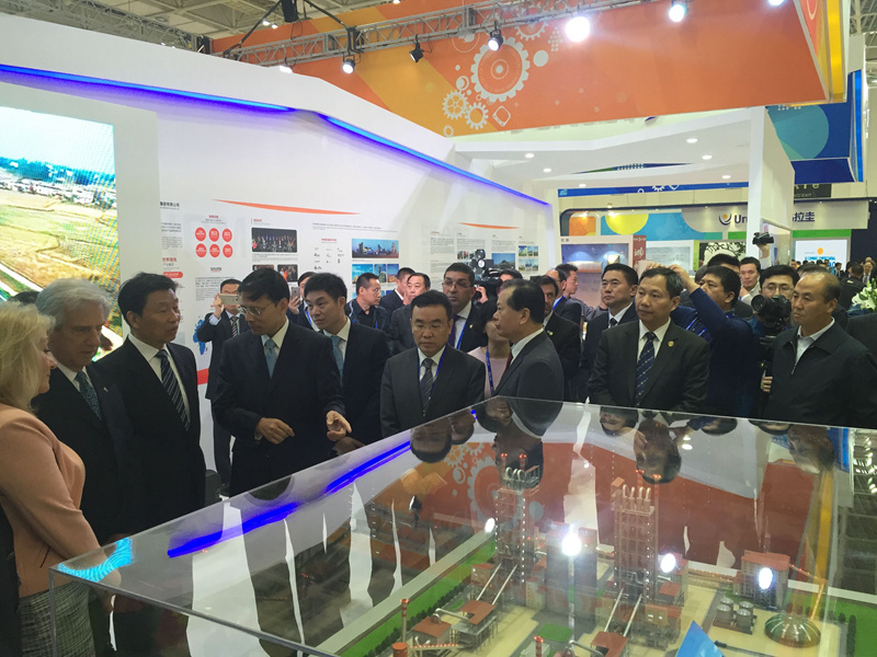2016年10月14日,中國-拉美產業合作展覽會上,國家副主席李源潮、烏拉圭總統塔瓦雷•巴斯克斯共同巡視了中材國際海外公司的展位,并聽取集團領導介紹。