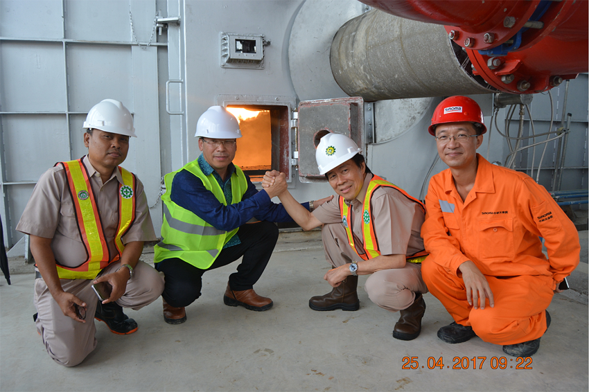 4月25日上午9時,由天津水泥院承建的印尼Baturaja項目回轉窯成功點火。天津水泥院副總經理孫金亮、項目總監李振興、客戶服務中心副主任周履平及項目經理趙永剛與業主董事會高層一起參加了點火儀式,共同見證了這一激動人心的時刻。