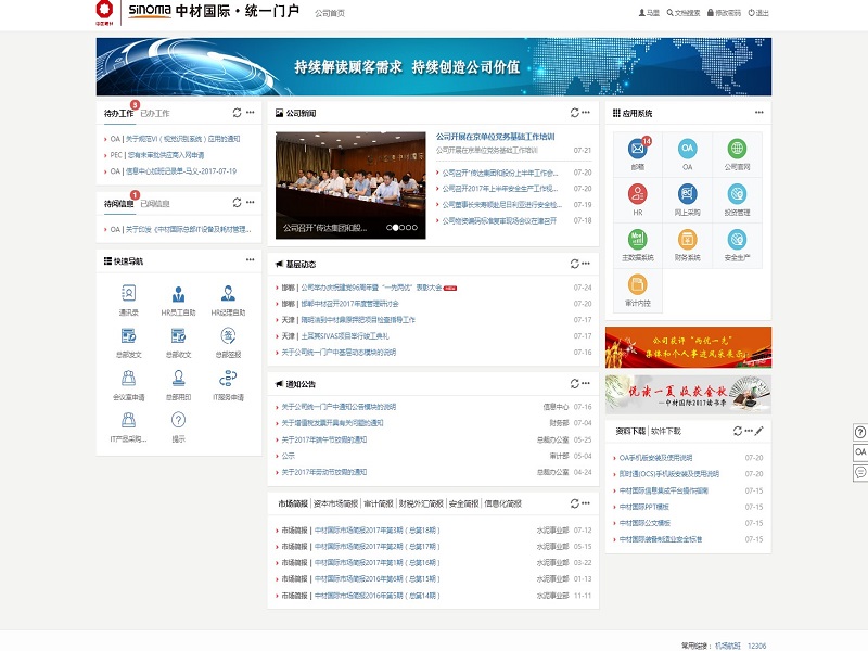 2.統(tǒng)一門戶系統(tǒng),用于實(shí)現(xiàn)公司全員統(tǒng)一登錄的門戶,按權(quán)限查看總部及各單位共享的新聞、簡(jiǎn)報(bào)和資料,且將各統(tǒng)建系統(tǒng)的流程和待辦集中到統(tǒng)一門戶中顯示;