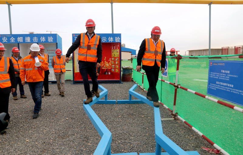 3月26日,劉志江抵達阿爾及利亞BC 2X6000t/d項目現場進行實地調研。經過安全培訓之后,劉志江首先實地參觀了項目部設立的“體驗式安全培訓區”并親自體驗了部分培訓項目。在施工現場,沿著兩條水泥生產線主要工藝實施節點,詳細了解了BC項目兩條生產線的工藝技術特點、創新工藝及工法、施工安全、質量控制和項目進度。對BC項目A線實現提前四個月點火、塔架76天實現結構和設備封頂、生料庫減壓錐預制分片吊裝、熟料庫無中心柱組對吊裝等施工記錄和創新實踐表示了高度認可,對BC項目良好的項目組織、施工創新、打破多項施工時間記錄提出了高度贊揚,并鼓勵BC 2X6000項目爭創“境外魯班獎”。