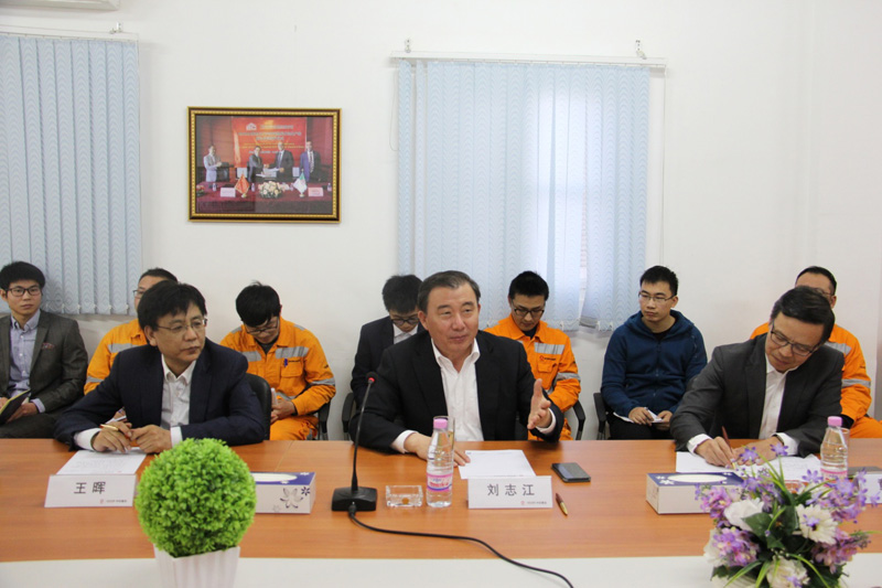 最后,劉志江在項目部會議室聽取了中材建設總經理助理兼BC項目經理榮亞坤的工作匯報,并與項目管理團隊、青年職工和老師傅進行親切交流。他首先向項目全體員工表示慰問和感謝,對項目實施進行了充分肯定。他表示,BC項目業主滿意、員工滿意、公司滿意、集團滿意,為中材國際塑造了品牌,為集團國際化發展做出了表率。他還向大家介紹了集團戰略和改革發展的良好形勢,介紹了中材國際和天津板塊的發展定位和美好前景,鼓勵在阿廣大員工在集團創世界一流建材企業戰略的統領下,加強創新協同,努力創造客戶,扎根阿爾及利亞,深耕阿爾及利亞,為中材建設、中材國際、天津板塊、中國建材集團的國際化和境外產業發展做出貢獻!