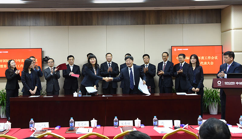 1月29日,中國建材集團董事長、黨委書記宋志平,中國建材集團總經理、黨委常委,中國建材股份董事長、黨委書記曹江林出席中材國際2019年工作會議。