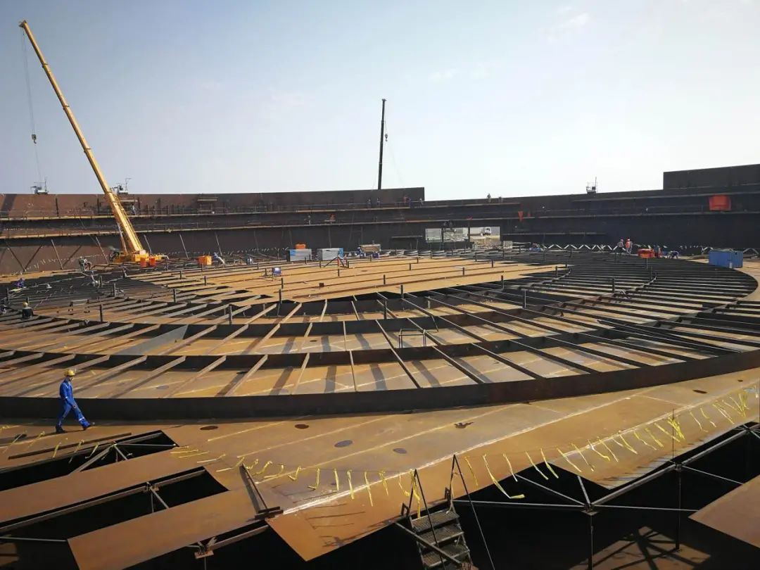 埃及PetrojetΦ110m原油罐項目包括建設5個浮頂原油罐,單個原油罐直徑為110米,高21.8米,重量達3300多噸,僅浮頂?shù)闹亓烤瓦_1000噸,容量為175,000立方米,相當于可存儲110萬桶國際原油。