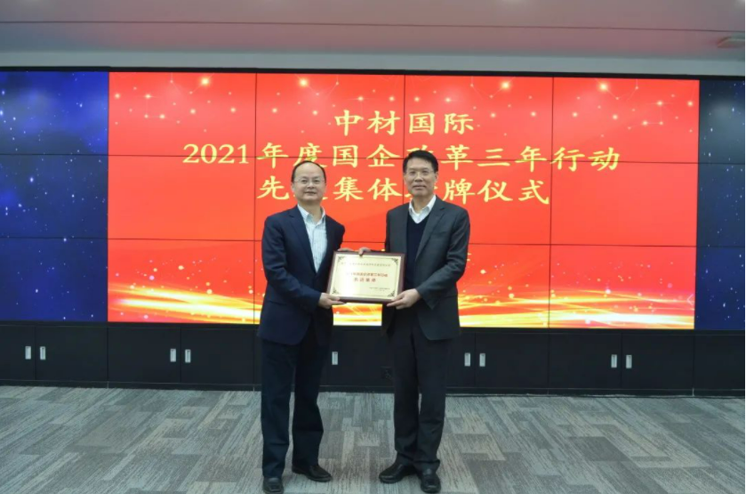 調研期間,蔣中文對中材國際2021年三家改革先進集體代表天津水泥院進行授牌。他充分肯定了天津水泥院的改革工作,并表示天津水泥院緊密圍繞十四五發展戰略,以系統性思維為導向推進全方位改革,深入推動黨的領導融入公司治理,全面提升自主創新能力,大力推行中層管理人員全體起立競聘上崗,積極探索中長期激勵機制,改革工作亮點突出、成果卓然。2022年,天津水泥院要進一步提高政治站位,統一思想認識,以科改示范企業申報為契機,全面深化各項改革工作,加強典型經驗的總結和共享,持續擴大改革成果,有效激發企業活力動力,加快實現高質量發展。