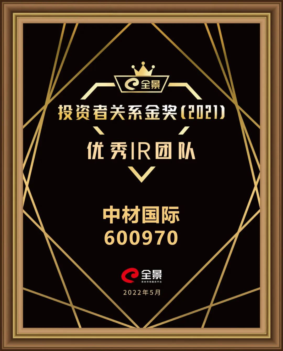 由全景網(wǎng)主辦、南開大學(xué)中國公司治理研究院參與推出的“全景投資者關(guān)系金獎”2021年度獲獎榜單正式揭曉!中材國際憑借在投資者關(guān)系工作中的優(yōu)秀表現(xiàn),榮獲“全景投資者關(guān)系金獎”優(yōu)秀IR團(tuán)隊(duì)獎。