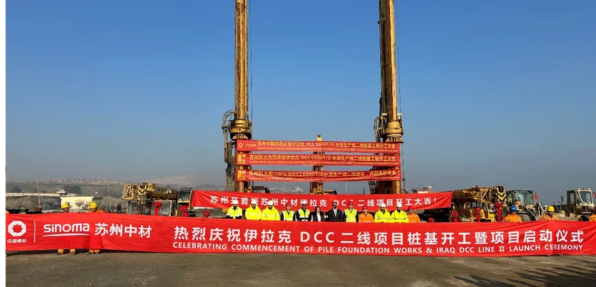 2月8日,由蘇州中材總承包的伊拉克DCC日產6000噸熟料水泥二線項目樁基工程開工暨項目啟動儀式圓滿完成。此項目是公司深耕伊拉克市場取得的又一豐碩成果。